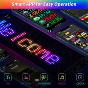Smart APP Control: Easily control the LED display through the iPixel Color app via Bluetooth. Customize your display with text, patterns, and animations to suit your needs and preferences. Adjust the brightness and speed to achieve the perfect visual effect for any scenario.